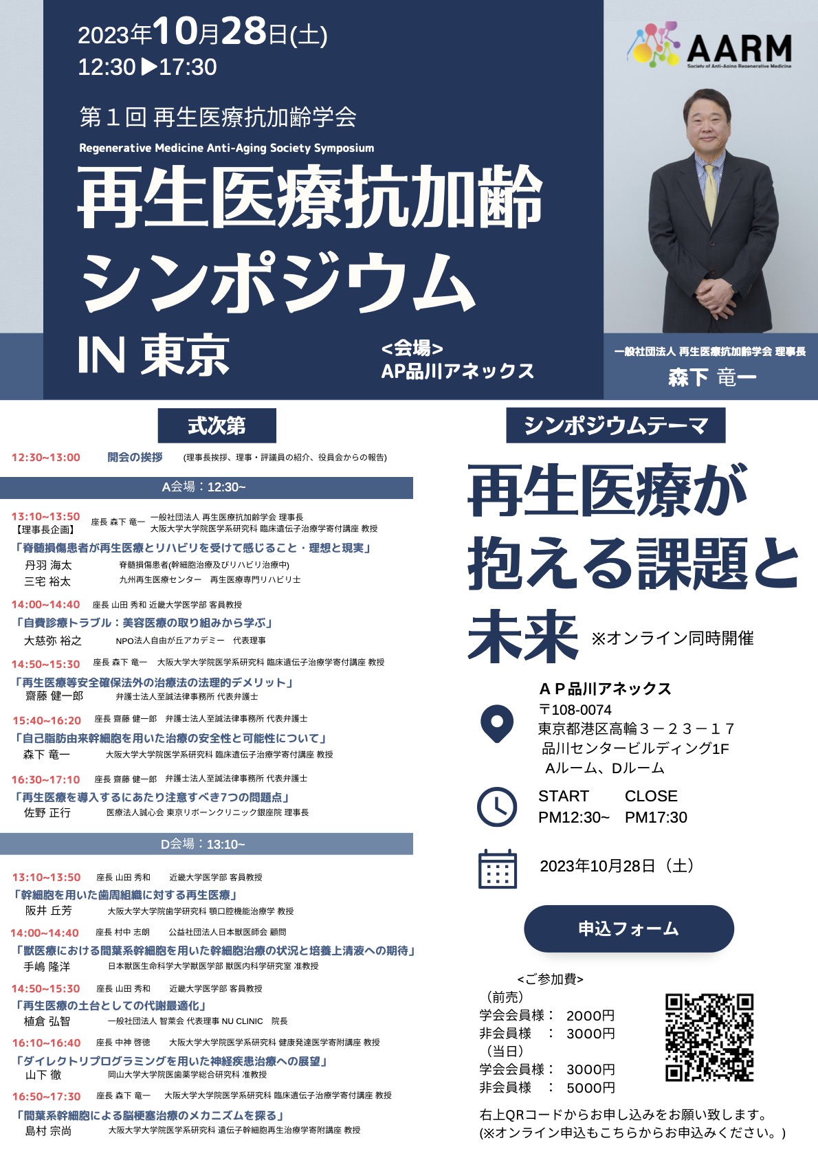 【2023/10/28 AARM主催シンポジウム】「第1回 再生医療抗加齢学会 再生医療抗加齢シンポジウム」を開催します。